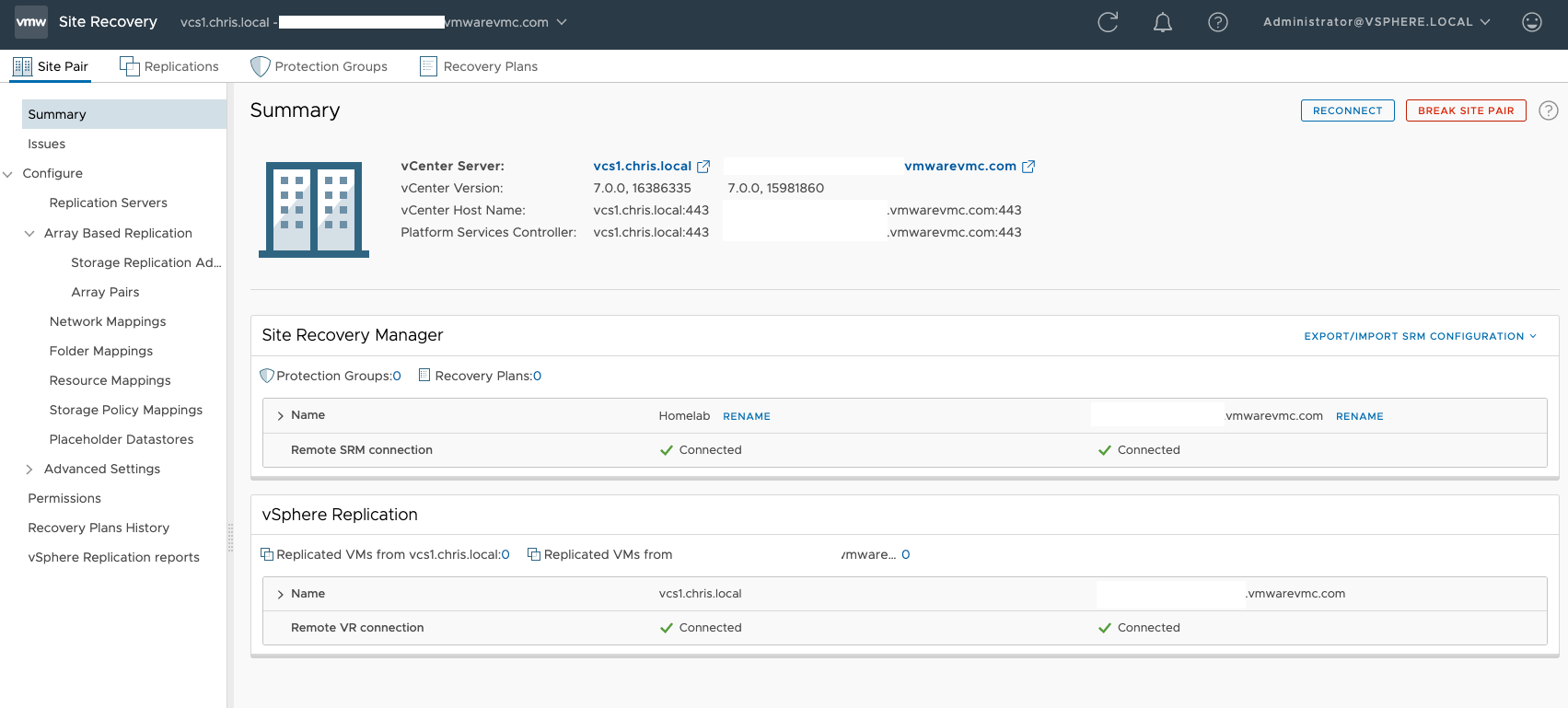 The process will take around 10 minutes, so download the SRM components including vSphere Replication if not already done so in preparation for deploying to your on-prem vCenter. I’ve already covered how to deploy SRM previously, vSphere Replication is done much in the same way. So go ahead and deploy both into your environment while they are both deploying into VMC on AWS.